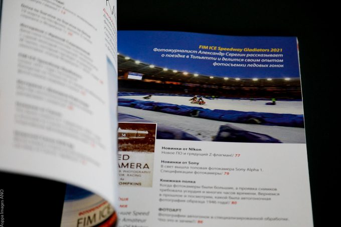 The magazine covers everything related to racing photography, from motocross to Formula 1: interviews with drivers and photographers, reviews and articles on related topics.